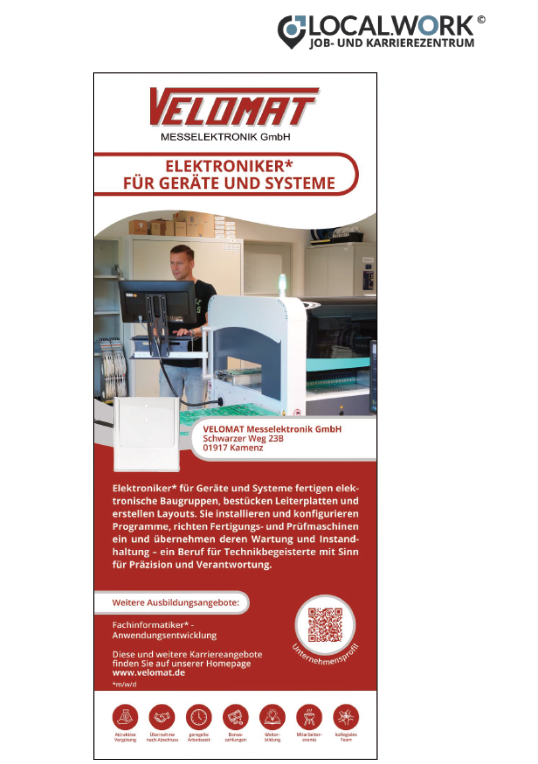 Since November 2025, VELOMAT Messelektronik GmbH has been involved as a career mentor for the apprenticeship programme for electronics technicians for devices and systems.