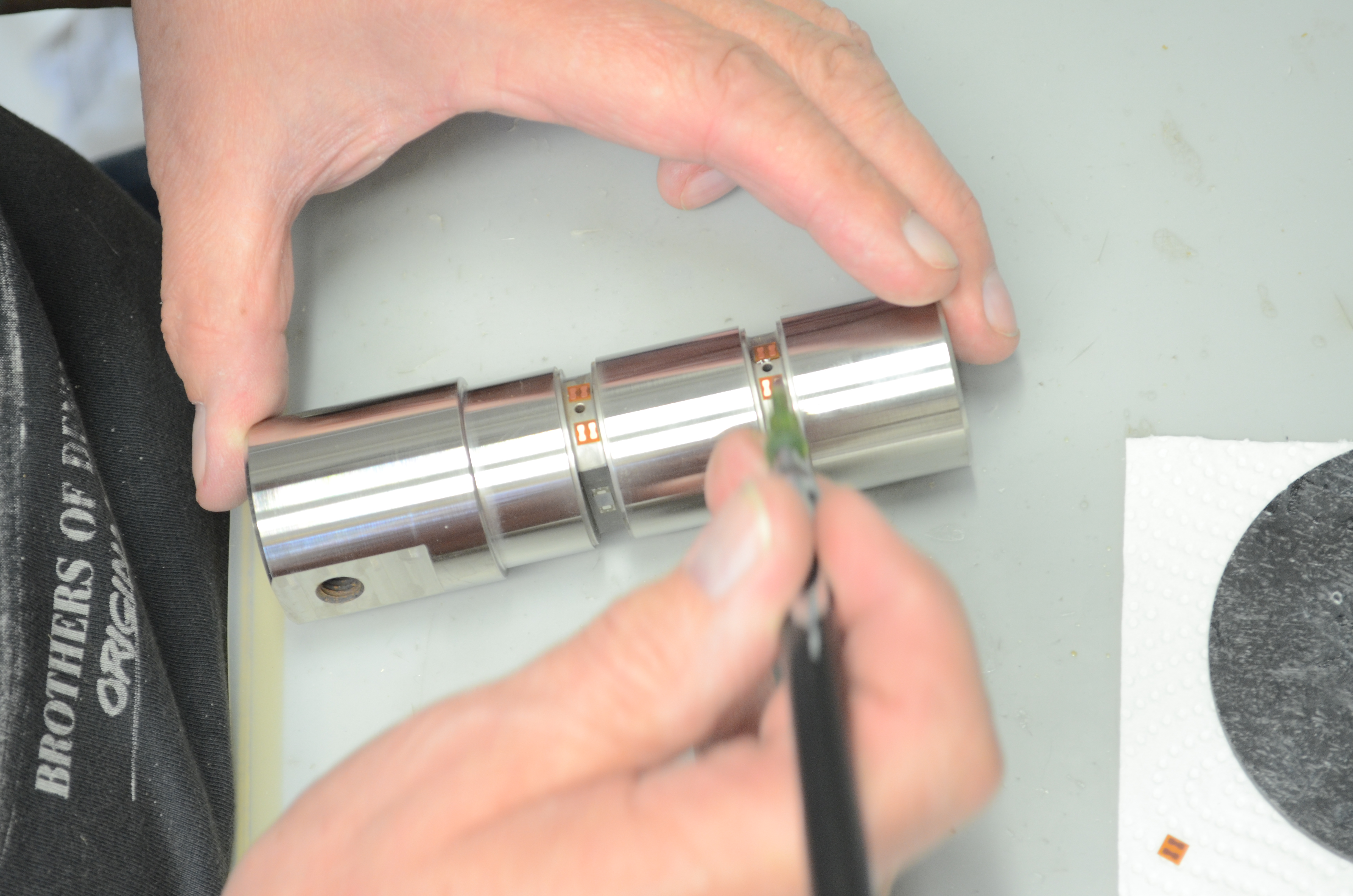 Además de la aplicación de galgas extensométricas de nuestros propios sensores de fuerza, también ofrecemos la unión y el cableado de galgas extensométricas en componentes del cliente. Tenemos la opción de realizar todo el proceso de aplicación en nuestro laboratorio o directamente in situ en su empresa.